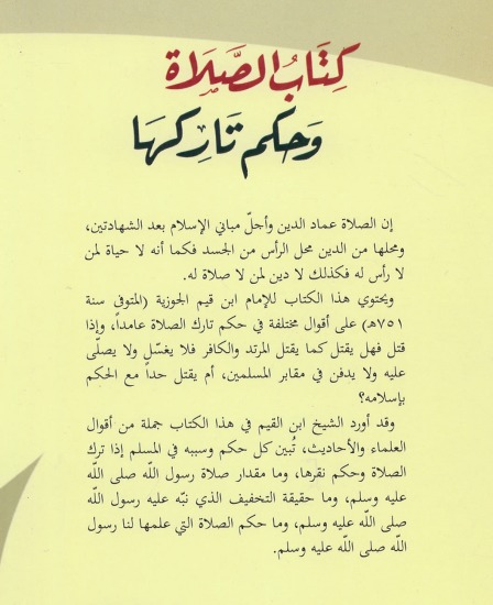 كتاب يبين حكم تارك الصلاة في الدين الاسلامي و يبين ايضا صفة صلاة الرسول محمد صلى الله عليه و سلم من حين تكبيره حتى فروغه منها و كل ما يرافق ذلك من حركات و قراءات و ادعية ..الخ.