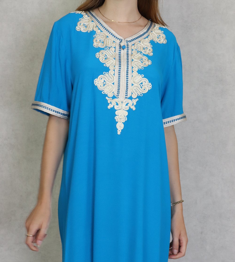 Cette robe orientale à manches courtes, encolure en V, tissu doux type coton et léger vous donnera une allure incroyable.