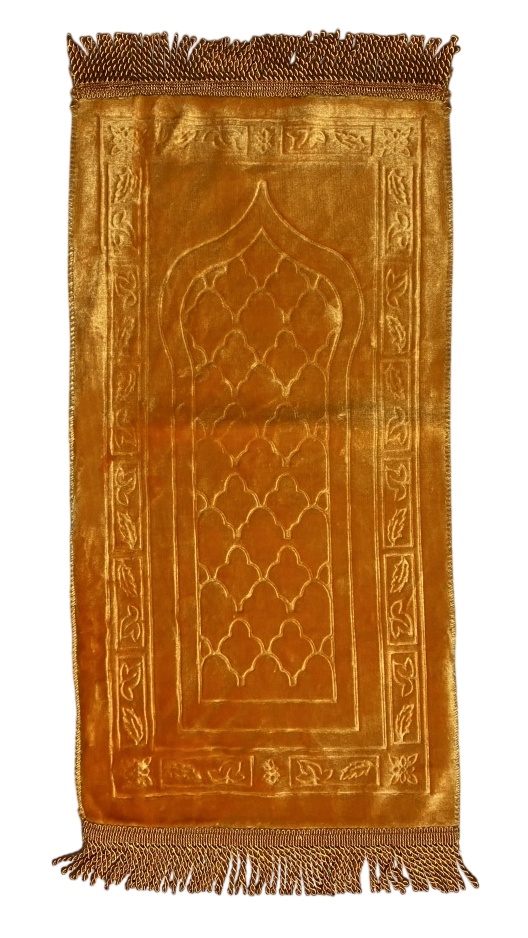 Tapis enfant très doux au toucher de type velours avec motifs discrets indiquant la direction de la qibla.