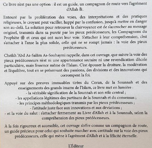 Le Cheikh ʿAbd As-Salām As-Souhaymî y rappelle que la véritable appartenance à la voie des pieux prédécesseurs ne relève pas d’un nom ou d’une revendication, mais d’une pratique sincère et équilibrée, fondée sur la droiture, la modération et l’éloignement des passions et des innovations.