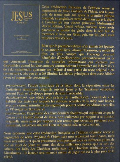 Cette traduction française revue et augmentée de "Jésus, Prophète de l'Islam" voit le jour près de trente-trois ans après la première édition originale en anglais, et trente-deux ans après le décès à Londres de son auteur principal, Muhammad 'Ata'ur Rahim 'aleyhi rahma, mort survenue après avoir parcouru la moitié du globe dans le seul but de terminer ce livre qu'il avait toujours rêvé d'écrire.