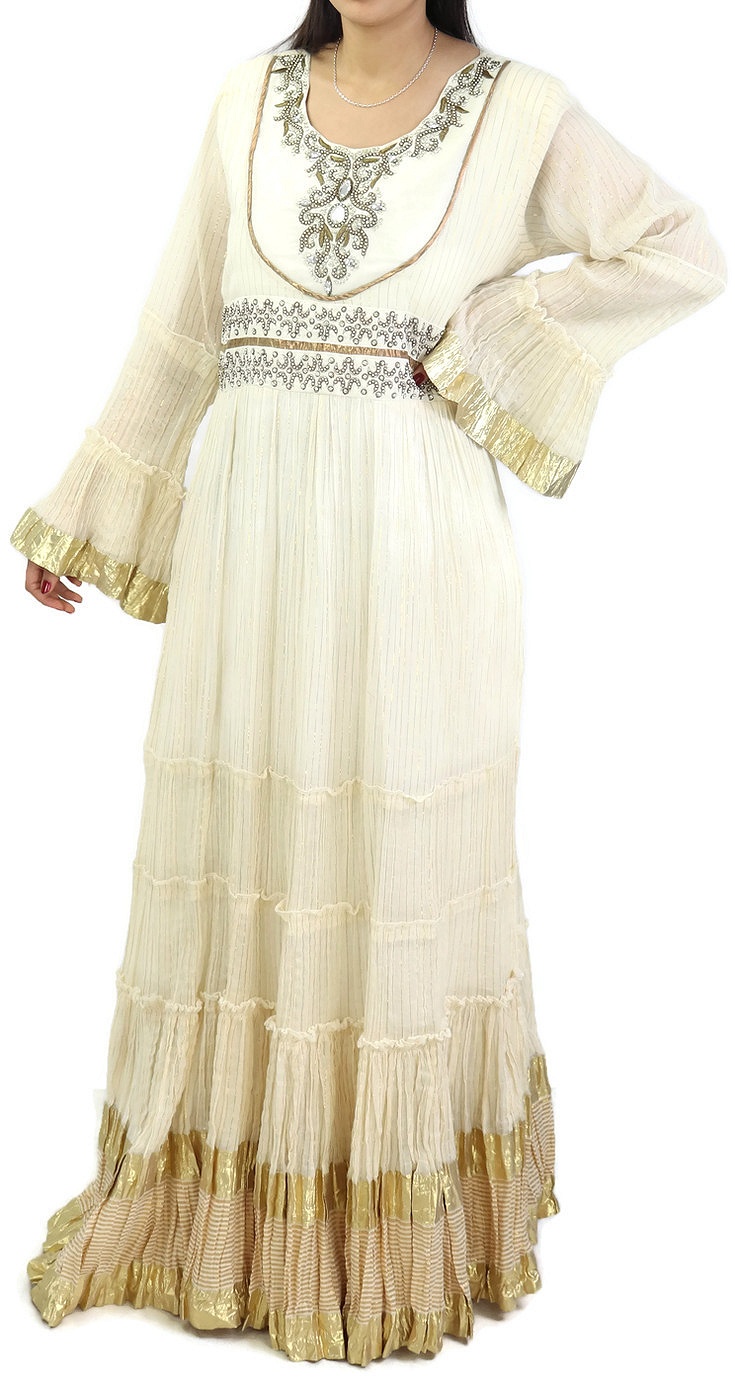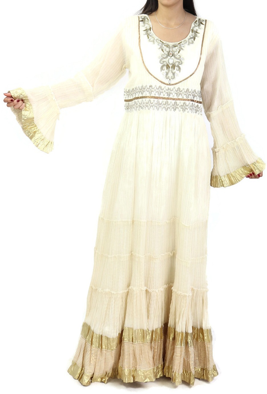 Robe orientale maghrébine longue brodée pour femme - Couleur blanc cassé (blanche) - REF. 33403 (28.00 €)