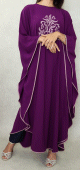 Magnifique robe de soirée orientale de couleur prune ornée de nombreuses broderies avec manches évasées - REF. 31011 (149.00 €)