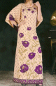 Robe orientale d'été avec motifs grandes fleurs violettes et un foulard assorti - REF. 20207 (24.90 €)