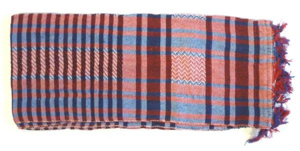 Grand foulard carré de qualité à carreaux rouge et bleu. Composition 100 % coton (double épaisseur, brodé des deux faces). Fabriqué en Egypte.