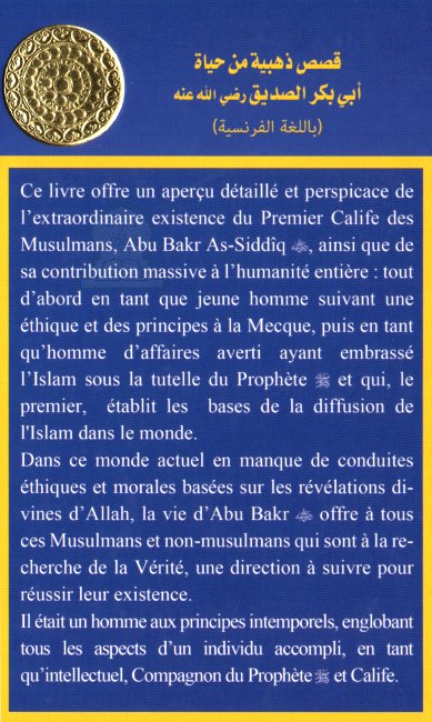 Dans ce monde actuel en manque de conduites éthiques et morales, la vie d'Abu Bakr offre à tous Musulmans et non-musulmans qui sont à la recherche de la Vérité, une voie à suivre pour réussir leur existence.