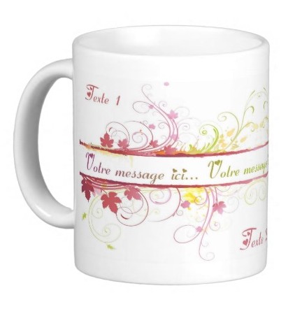 Mug personnalisable avec arabesques et feuilles multicolore.