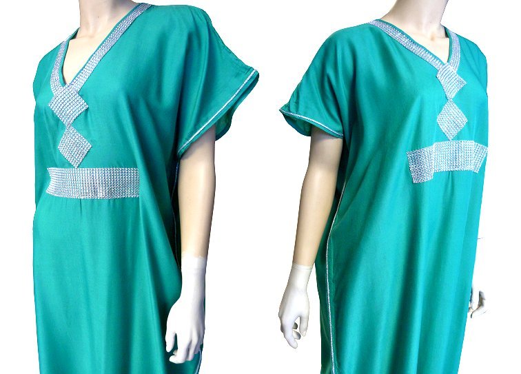 Belle gandoura traditionnelle marocaine, entièrement brodée à la main par des artisans marocains qualifiés.