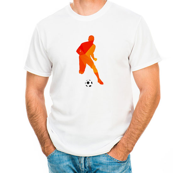 T-Shirt moderne avec une belle illustration sous forme d'un joueur de football qui drible.
