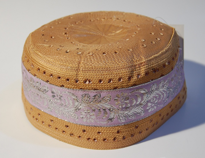 Chachia rigide - Taguiya - saumon avec bande mauve clair et des jolies décorations Taille au choix - REF. 23147 (3.50 €)