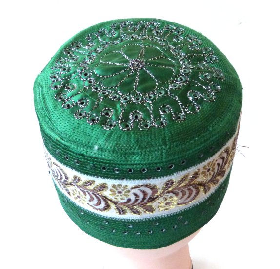 Chachia traditionnelle de couleur vert foncé avec décoration argentées tout autour... De petits trous discrets permettent la respiration de la tête pour un meilleur confort. Taille 57