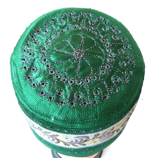 Chéchia (Chachia) vert foncé rigide avec de jolies décorations Vetement & Accessoire