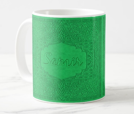 Mug avec prenom personnalisable en calligraphie arabe style "Naskh" (Tasse verte)