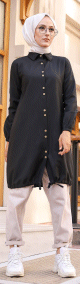 Chemise-Tunique boutonnée (Vetement Hijab casual et modeste pour femme voilée) - Couleur noir - REF. 34643 (25.00 €)