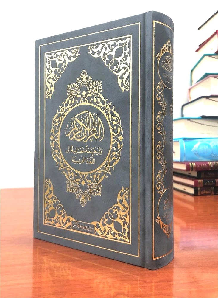 Le Noble Coran bilingue (arabe/français) avec couverture cartonnée de type daim, doux au toucher. Idéal pour offrir.
