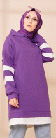 Tunique décontractée avec capuche (Vêtement hijab) - Couleur violet avec bandes blanches - REF. 37802 (19.00 €)