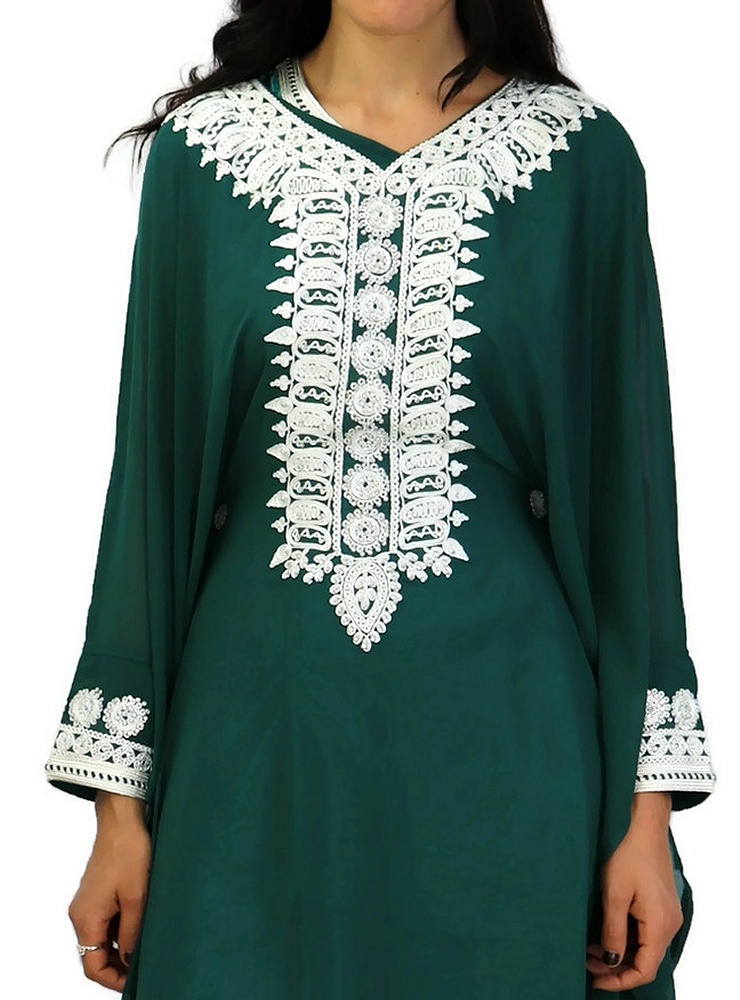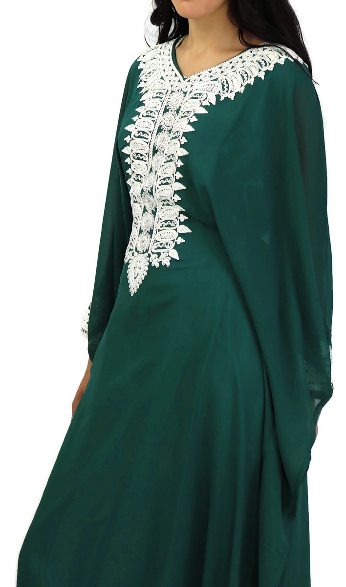 Robe de soirée orientale couleur avec effet papillon décorée de broderies et de strass - Couleur vert Vetement & Accessoire