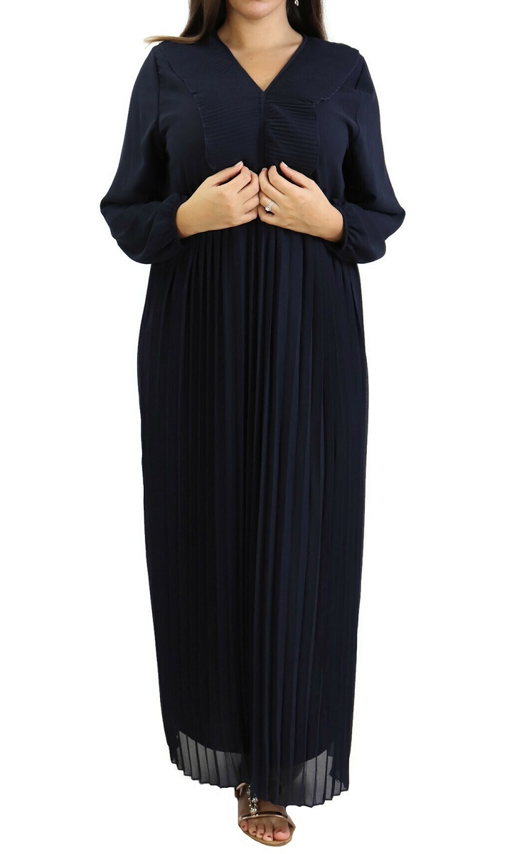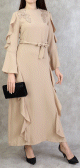Optez pour cette robe longue style romantique. On aime le encolure en V avec froufrous, entièrement doublée y compris au niveau des manches, taille élastique, le bas offre un mouvement de plissé soleil. Elégante et féminine, cette robe se porte en toute occasions.