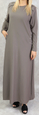 Robe longue boutonnée avec ceinture et broderies - Couleur gris (Vêtements islamiques pour femmes musulmanes voilées) - REF. 32583 (49.90 €)