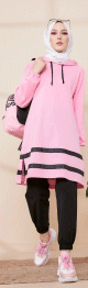 Tunique avec capuche et bandes noires pour femme (Vêtement hijab moderne - Collection) - Couleur rose clair - REF. 35848 (19.00 €)