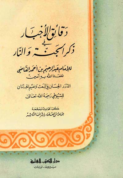 دقائق الأخبار في ذكر الجنة والنار ويليه (الدرر الحسان في البعث ونعيم الجنان)ـ - عبد الرحيم بن أحمد القاضي - غلاف