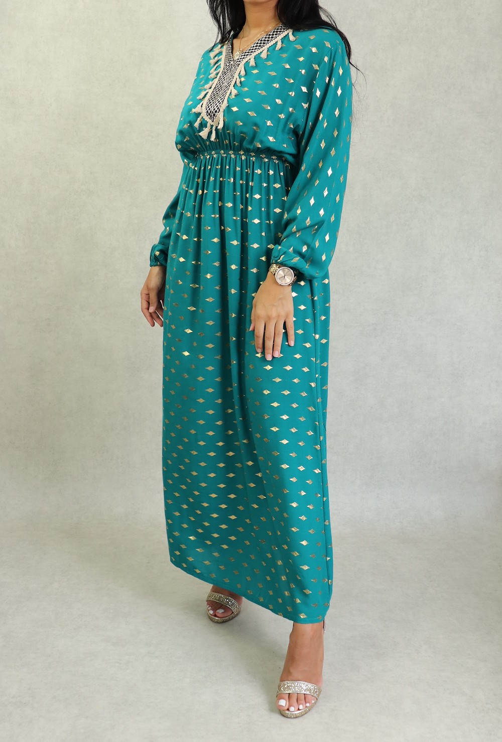 Robe longue style oriental avec borderie originale sous forme de coeur pour femme - Couleur pétrole - REF. 37683 (24.90 €)