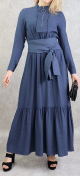 Robe longue à rayures avec ceinture pour femme voilée - Couleur bleu indigo - REF. 33210 (29.90 €)