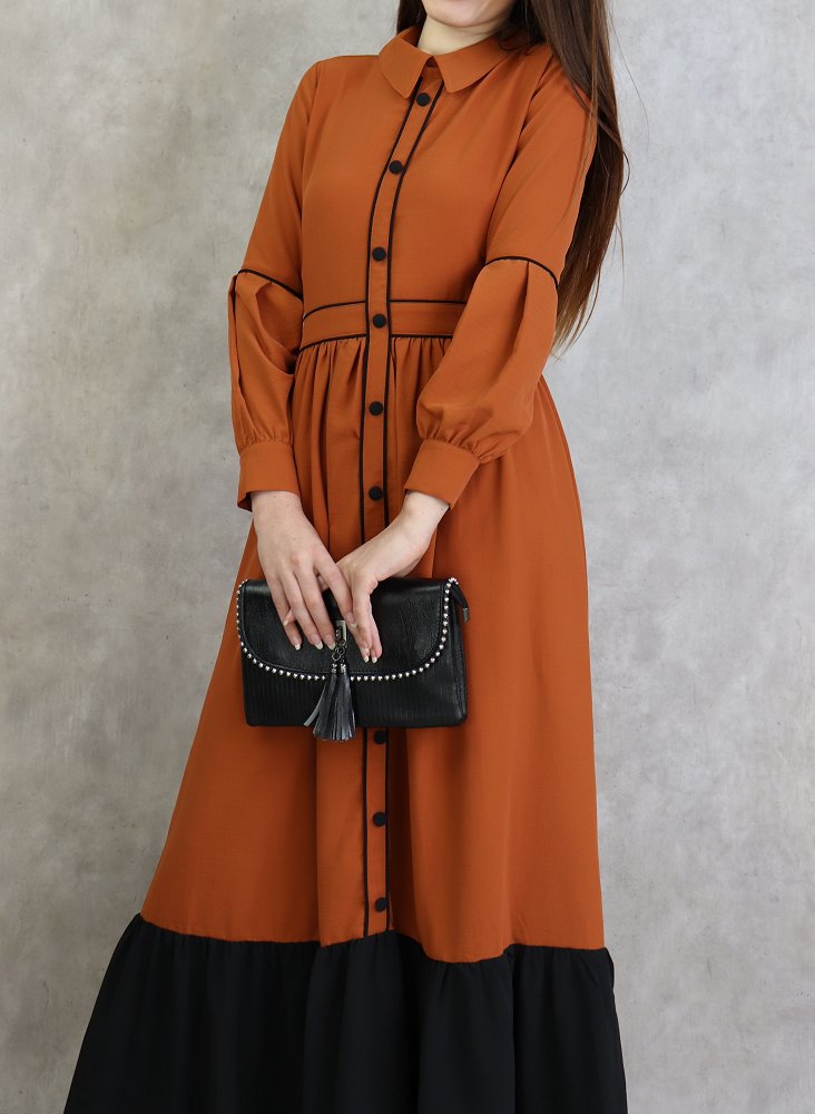 Robe longue casual boutonnée avec sa ceinture (Vetement pour femme musulmane) - Couleur brique - REF. 33928 (35.00 €)