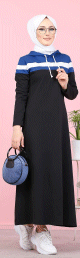 Robe décontractée à capuche de type sportwear - Vêtement Hidjab pour femme musulmane - Couleur noir, blanc et bleu indigo - REF. 32926 (29.90 €)