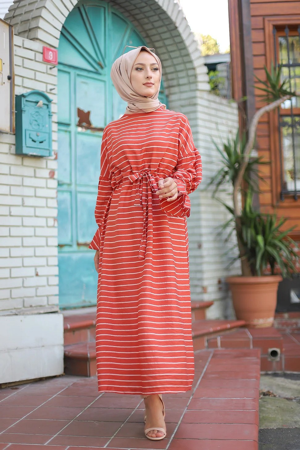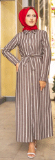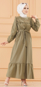 Une robe à manches longues. Élastique au poignet. Confectionnée dans une matière légère avec une ceinture assortie à la taille à nouer sur l’avant.