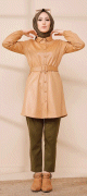 Tunique brillante avec ceinture (Vêtement style chic pour femme voilée) - Couleur beige - REF. 35689 (25.00 €)
