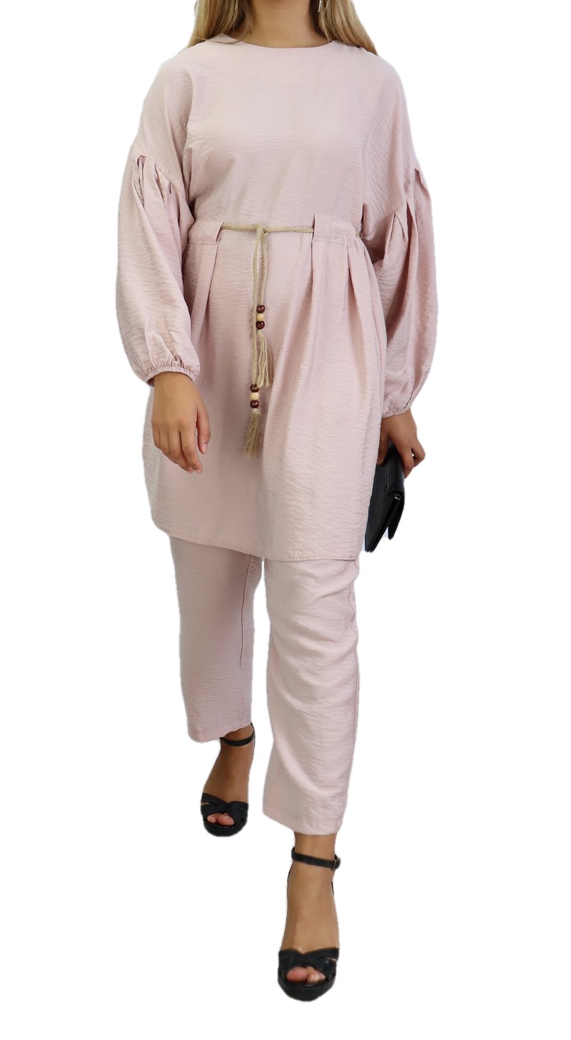 Ensemble stylé 2 pièces haut et bas pour femme - Couleur rose poudré Vetement & Accessoire