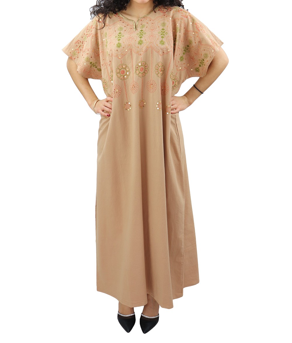 Robe marocaine manches courtes avec broderies - Couleur Rouille - REF. 32373 (29.00 €)