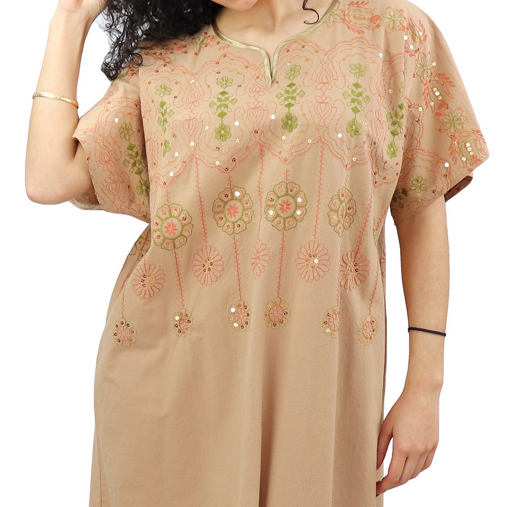Robe femme style oriental brodée avec perles à manches courtes - Couleur rose saumon - REF. 38897 (29.00 €)