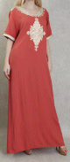 Robe tunisienne d'été longue manches courtes avec broderies - Couleur Rouille - REF. 37675 (26.00 €)