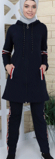 Survêtement femme à capuche de couleur bleu marine avec bandes tricolores (Vetement Sport musulmane - Grande taille disponible) - REF. 31650 (29.90 €)