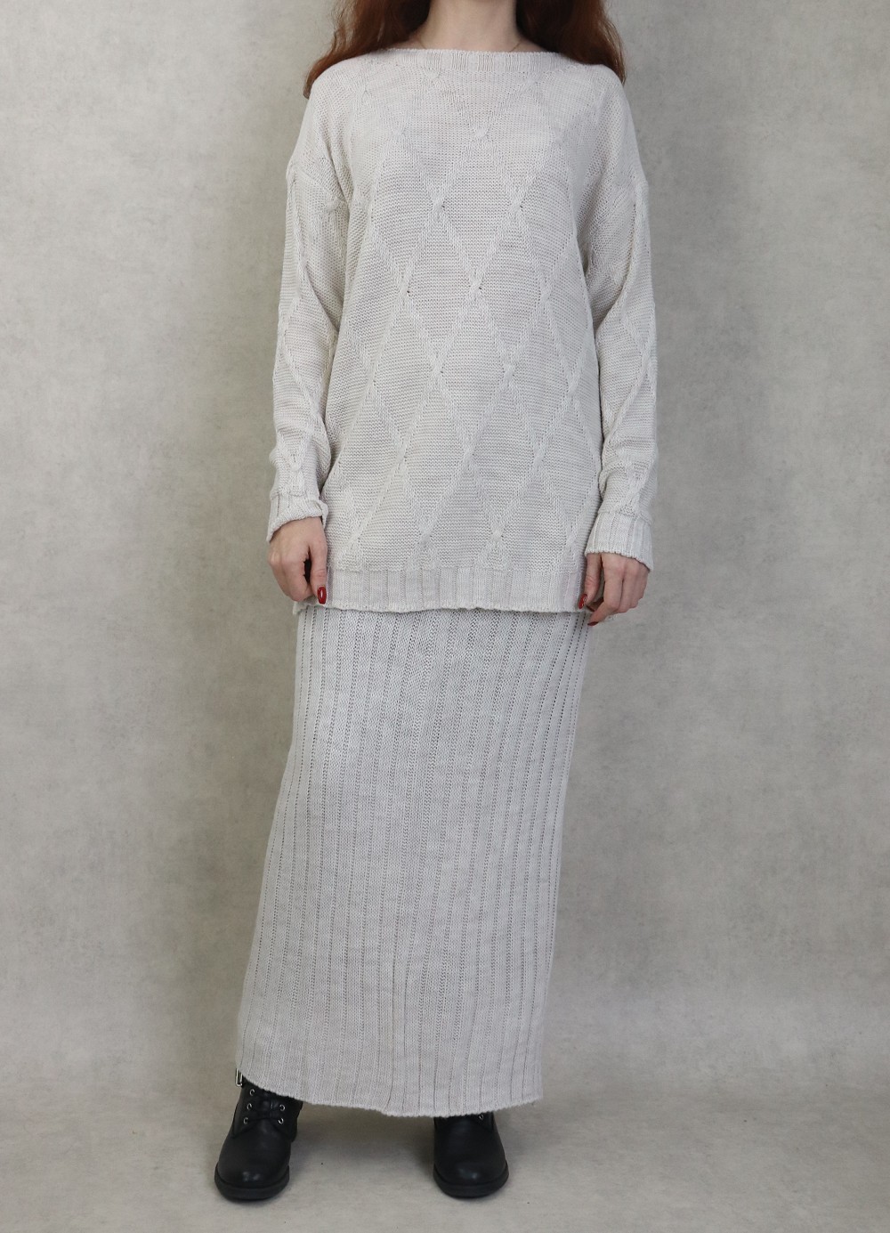 Ensemble en maille deux pièces tunique et jupe pour femme (Saison Automne-Hiver) - Couleur Crème Vetement & Accessoire