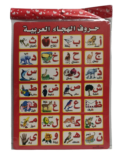 Résumé des 28 lettres de l'alphabet arabe avec illustrations.