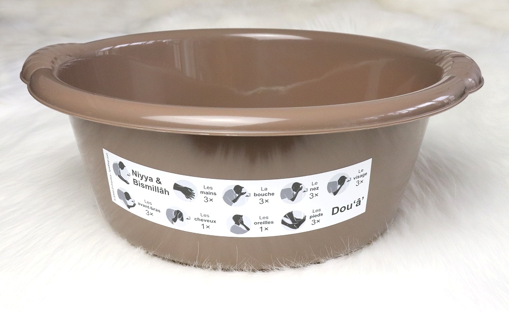 Récipient pédagogique pour faire l'ablution mineure (woudou) avec illustration des différentes étapes - Couleur Marron - REF. 35478 (3.90 €)