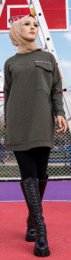 Tunique décontractée ample avec grande poche (Sweat femme Hijab) - Couleur kaki - REF. 35268 (22.00 €) - En Promotion à 17.50 €