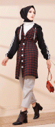 Tunique longue boutonnée à carreaux pour femme (Vetement Hijab Automne-Hiver) - Couleur gris - REF. 38294 (25.00 €)