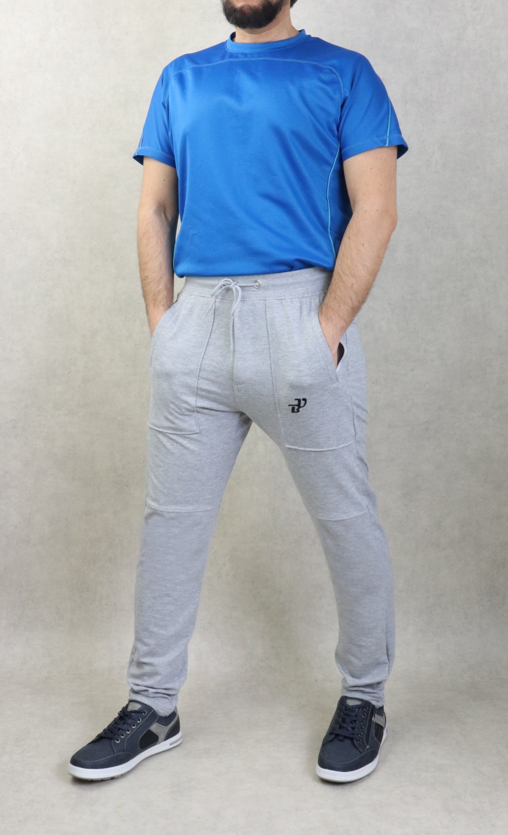 Pantalon jogging léger grandes poches zippées pour homme - Marque Best Ummah - Couleur Gris foncé chiné - REF. 36698 (22.00 €)