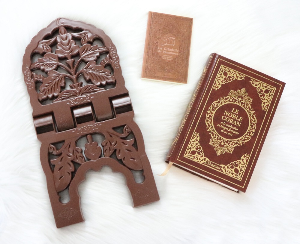 Pack cadeau marron : Le Noble Coran Bilingue francais/arabe - La Citadelle du musulman - Porte Coran assortis