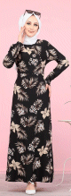 Robe noire fleurie tissu crêpe (Vetement Hijab) - REF. 32305 (29.90 €) - En Promotion à 22.90 €