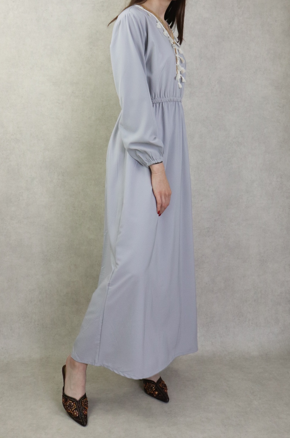 Robe longue brodée avec un lien à la taille pour femme - Couleur Gris - REF. 37038 (24.90 €)