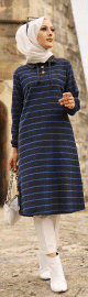Tunique longue à rayures (Vetement hijab) - Couleur noir et bleu - REF. 35178 (24.90 €)