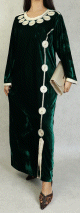 Robe longue orientale algérienne en velours brodée et perlée pour femme - Couleur Vert foncé - REF. 29689 (29.90 €)