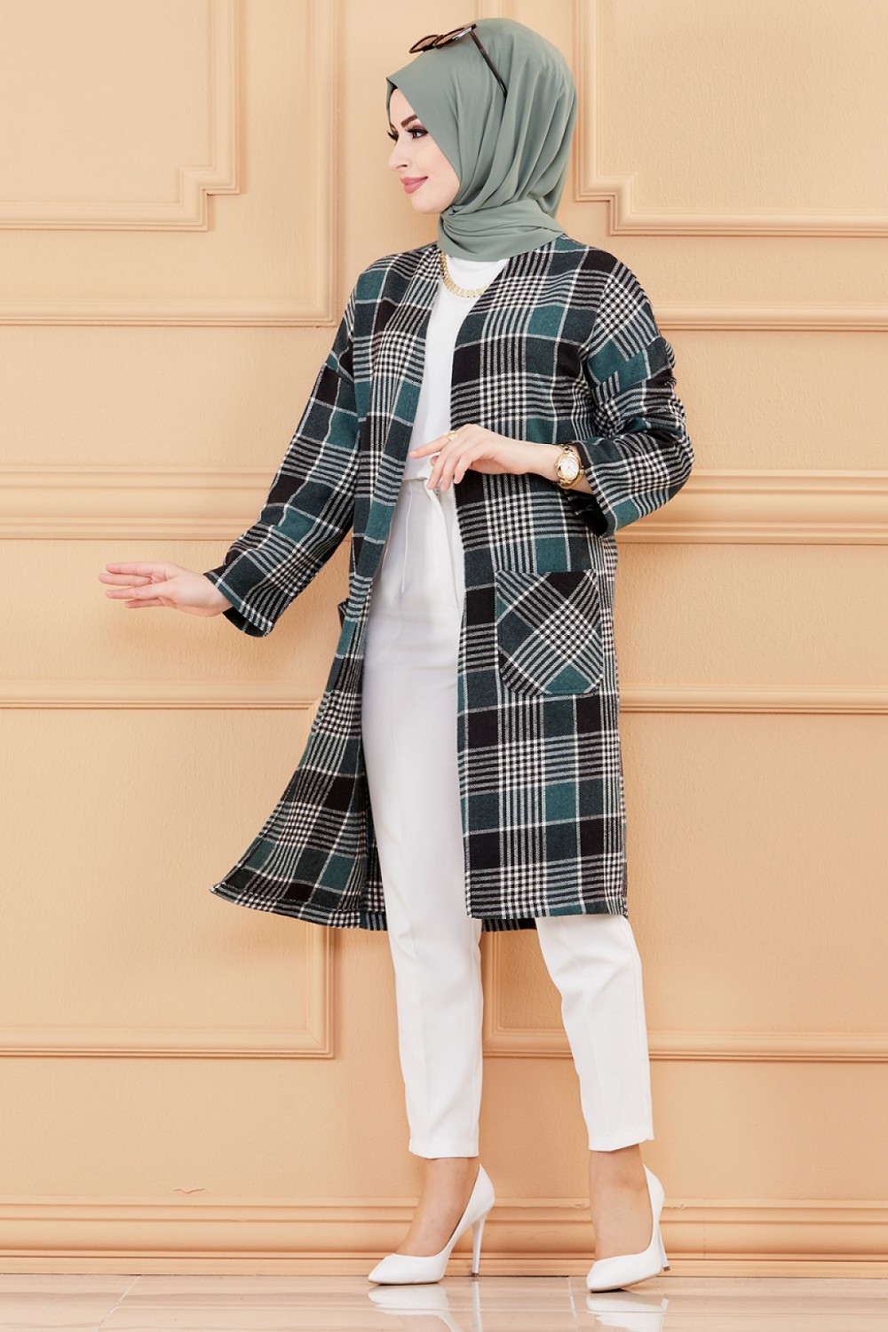 Veste longue (Gilet Saison Automne-Hiver pour Femme Voilée) - Couleur noir et vert émeraude Vetement & Accessoire