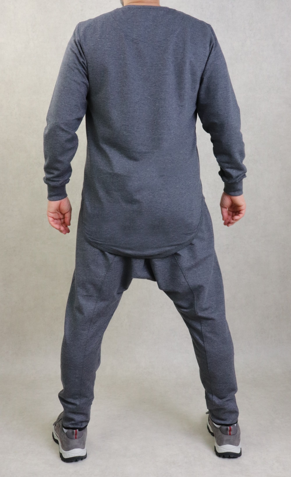 Ensemble Sweat longline et son Pantalon Seroual Jogging léger homme - Marque Best Ummah - Couleur Gris foncé chiné - REF. 38719 (49.90 €)