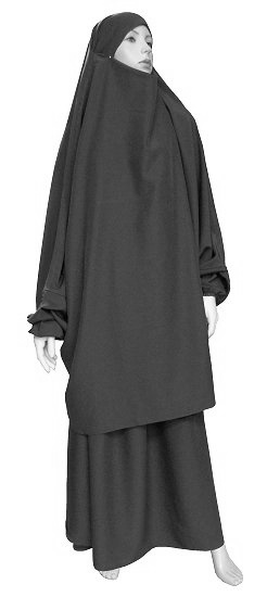 Jilbab deux pieces (Cape + Jupe) - Tissu de qualite superieure - Couleur gris fonce